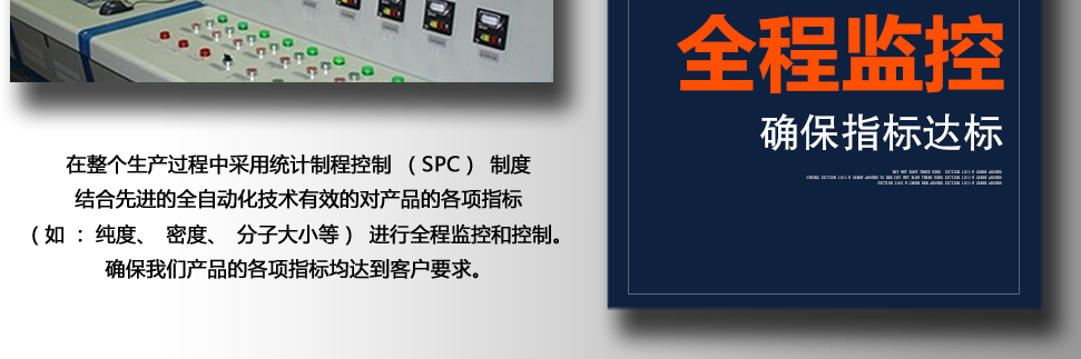 在整個生產(chǎn)過程中,我們的采用統(tǒng)計制程控制制度和先進(jìn)的全自動化技術(shù),對產(chǎn)品的各項指標(biāo)(如:純度、密度、粒子大小等指標(biāo))進(jìn)行全程監(jiān)控。確保了我們產(chǎn)品的各項指標(biāo)均達(dá)到客戶要求。